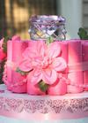For the diapers I wrapped them with pink tissue paper first and then rolled them- 19 total. I used two different kinds of pink to tie in with the box that I made.